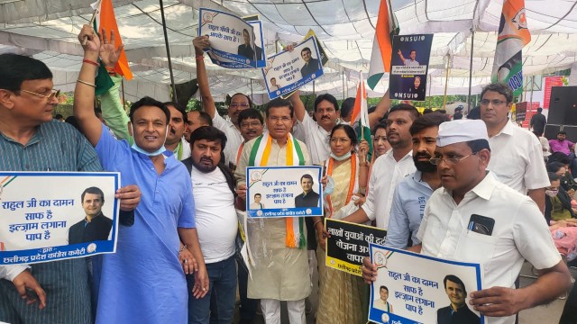 बिलासपुर-अखिल भारतीय कांग्रेस कमेटी द्वारा 20 जून को जंतर मंतर दिल्ली में आयोजित ” सत्याग्रह ” में छत्तीसगढ़ कांग्रेस के प्रदेश अध्यक्ष माननीय मोहन मरकाम जी के नेतृत्व में बड़ी संख्या में कांग्रेसजन शामिल हुए । जिसमे शहर ज़िला कांग्रेस अध्यक्ष विजय पांडेय, ज़िला कांग्रेस कमेटी ( ग्रामीण ) अध्यक्ष विजय केशरवानी भी शामिल हुए । केंद्र की नरेंद्र मोदी सरकार अपनी विफलताओं से तिलमिला कर विपक्ष के नेताओ पर केंद्रीय जांच एजेंसियों का दुरुपयोग कर रही है और ईडी ,सीबीआई ,आईटी के माध्यम से दबाव बनाया जा रहा है ,सांसद राहुल गांधी जी लगातार केंद्र की अव्यवहारिक योजनाओ का विरोध करते रहे है ,चाहे राफेल घोटाला हो, नोटबन्दी , जीएसटी, हो ,या सेना में 4 वर्ष के लिए भर्ती हो , राहुल गांधी जी के निडरता से