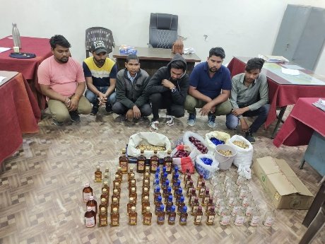 बिलासपुर–आबकारी विभाग बिलासपुर के द्वारा रिहायशी मकान में मिलावटी अंग्रेजी शराब की जप्ती 12.8KB सचिव सह आबकारी आयुक्त निरंजन दास ( LA.S ) एवं प्रबंध संचालक CSMCL ए.पी. त्रिपाठी के द्वारा प्रतिदिन मदिरा दुकानों में मंदिरा की गुणवत्ता एवं अधिक दर पर मंदिरा विक्रय रोके जाने हेतु प्रभावी जांच तथा कार्यवाही के निर्देश दिये गये थे । आबकारी विभाग बिलासपुर के द्वारा उक्त आदेश के पालन में विगत कुछ माह पूर्व विदेशी मदिरा दुकान सरकण्डा में दुकान के कर्मचारियों को रंगे हाथों मंदिरा में मिलावट करते हुये गिरफ्तार कर चालानी कार्यवाही की गई : 1विक्की सिंह पिता पवन सिंह ठाकुर उम्र 25 वर्ष साकिन बोडतरा कला पुलिस थाना चिल्फी पंकज पिता वेदराम पाटले उम्र 25 वर्ष साकिन तिफरा पुलिस थाना सिरगिट्टी को गश्त एवं मंदिरा दुकानों की नियमित जांच हेतु भ्रमण के दौरान मुखबिर से सूचना प्राप्त हुई कि विदेशी मदिरा दुकान सरकण्डा में वर्तमान में कार्यरत कुछ कर्मचारी गण उपरोक्त पूर्व बर्खास्त कर्मचारियों के साथ मिलकर राहुल राजपूत पिता पोसागिल राजपूत के लिंगियाडीह स्थित किराए के मकान में संयुक्त रूप से मिलकर मदिरा का अवैध विनिर्माण कर बोतलों में भराई कर रहे हैं । सूचना पर राहुल राजपूत के मकान में दबिश देकर विधिवत् तलाशी लेने पर निम्नानुसार मदिरा जप्त की गई : 1 एक प्लास्टिक की सफेद बोरी के अंदर रखी मैक्डावल नंबर , रॉयल स्टेग इम्पीरियल ब्लू , गोवा स्पेशल एवं जिप्सी किस्की बिना होलोग्राम का कुल जप्त मात्रा 19.245 लीटर 2- सफेद रंग की एक बोरी में रखी इम्पीरयिल ब्लू सर्वेल स्टेग मैक्डायल नंबर 1 साबूत ढक्कन 3 गोवा स्पेशल की खाली शीशियाँ उक्त अवैध कृत्य में संयुक्त रूप से सम्मिलित निम्न आरोपियों को गिरफ्तार किया गया 1 राहुल पिता पोसागिल राजपूत उम्र 32 सा . रमतला पुलिस थाना कोटा 2 कुहुक राम पिता आल्हा राम कुरै उम्र 26 साकिन पहन्दा पुलिस थाना कोटा 3 जयकुमार पिता स्व सुमरित लाल गेंदले उम्र 23 साकिन लिमतरा पुलिस थाना मस्तुरी 4 रामनारायण पिता स्व . पंचराम सहीस उम्र 26 साकिन दल्हा पोडी पुलिस थाना अकलतरा 5 ) पंकज पिता वेदराम पाटले उम्र 25 वर्ष साकिन तिफरा पुलिस थाना सिरगिट्टी 8 विक्की सिंह पिता पवन सिंह ठाकुर उम्र 25 वर्ष साकिन दोडतरा कला पुलिस थाना चिल्फी 34 एवं उनके विरुद्ध छ.ग. आबकारी अधिनियम 1915 तथा संशोधित अधिनियम 2011 की धारा ( 1 ) ( क ) ( च ) ( ज ) 34 ( 2 ) . 36 एवं 59 ( क ) के तहत प्रकरण पंजीबद्ध कर आरोपियों को जेल दाखिल किया प्रकरण की प्रारंभिक विवेचना में आरोपियों के द्वारा गोवा स्पेशल शराब को ब्रान्डेड शराब की शिशियों में भरकर ग्राहकों से संपर्क कर शहर में कम रेट में बेचे जाने की जानकारी मिली होने वाले मुनाफे को उपरोक्त सभी आरोपी आपस में बांट लिया करते थे । उक्त क