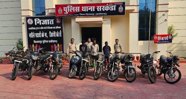 बिलासपुर- सरकण्डा पुलिस द्वारा क्षेत्र में हुई चोरी की पता तलाश की जा रही थी मुखबीर से सूचना मिला कि सकरी क्षेत्र का आदतन बदमाश राजा नेताम नूतन चौक सरकण्डा में आकर मोटर सायकल बिक्री करने हेतु ग्राहक की तलाश कर रहा है सूचना पर थाना प्रभारी सरकंडा फैजुल होदा शाह के हमराह टीम गठित कर मुखबीर की सूचना के आधार पर मौके पर पहुंचकर घेराबंदी कर उक्त व्यक्ति को पकडा, जिसे मोटर सायकल के संबंध में पूछताछ करने पर उक्त मोटर सायकल के अलावा शहर के अलग-अलग स्थानों में अपने साथी रविदास मानिकपुरी निवासी ईमलीभाठा सरकण्डा के साथ मिलकर चोरी करना बताया जिसके मेमोरण्डम कथन के अनुसार आरोपी राजा नेताम पिता मयाराम नेताम उम्र 27 वर्ष निवासी शांतिनगर सकरी, थाना सकरी के कब्जे से 5 नग मोटर सायकल एवं आरोपी रविदास मानिकपुरी पिता श्यामदास उम्र 38 वर्ष निवासी ईमलीभाठा जोगी आवास सरकण्डा, थाना सरकण्डा, के कब्जे से 03 नग मोटर सायकल, कुल 08 नग मोटर सायकल जुमला किमती 2,15,000/- रू. जप्त कर आरोपियो के विरूद्ध 41 (1-4) जाफौ. / 379 भादवि के तहत कार्यवाही की जाकर आरोपियो को गिरफतार कर न्यायालय पेश किया गया है ।