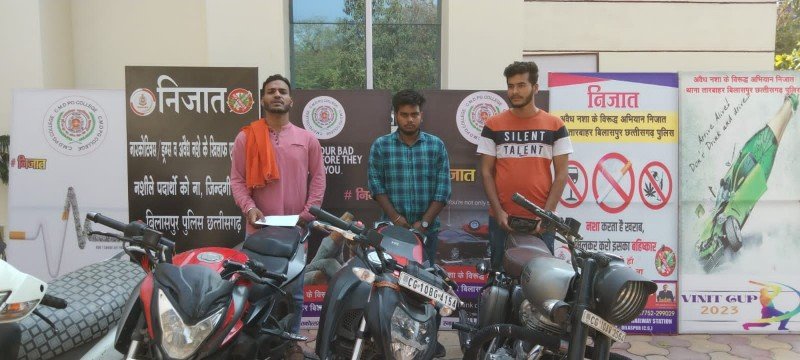 बिलासपुर- एसपी के निजात अभियान के तहत कार्यवाई जारी इसके चलते होलो में ज्यादा घटना नही घाटी,ये अलग बात है कि निजात का असर पुलिस की होली में दिखा, साईं मंदिर के सामने क्रांति नगर गार्डन में ग्रुप बनाकर लड़के सिगरेट पीने, हल्ला शोर करने की सूचना थी, उक्त स्थान से तीन लड़कों और 5 मोटरसाइकिल को थाना लाया गया तथा उनके परिजनों के सुपुर्द किया गया, MV एक्ट के अंतर्गत पृथक से चालान किया गया