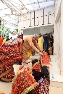 बिलासपुर-नवरात्र के अंतिम दिन मुख्यमंत्री भूपेश बघेल ने अपने निज निवास पर नवरात्र के अंतिम दिन कन्याओं को भोज कराया, मुख्यमंत्री भूपेश बघेल और मुक्तेश्वरी बघेल ने कन्या पूजन कर उनको भोजन परोसा ,कन्या भोज का बड़ा महत्व है शक्ति स्वरूपा की आराधना के पर्व पर नवरात्र के अंतिम दिन कन्या भोजन कराया जाता ,मुख्यमंत्री भूपेश बघेल हर साल नवरात्र पर कन्या भोज कराते है ,मुख्यमंत्री ने सपत्निक कन्या पूजन किया उनको चुनरी उढाई, कन्या पूजन और भोज का नवरात्र के अंतिम का विशेष महत्व है ।