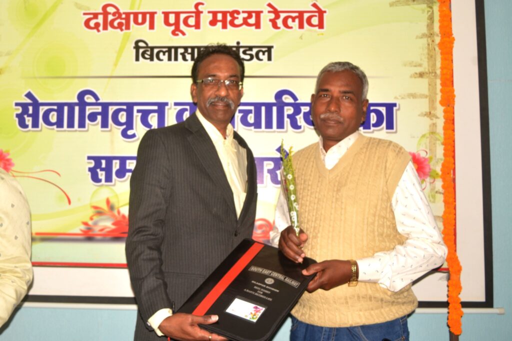 बिलासपुर,मंडल रेल परिवार के 25 सदस्य हुये सेवानिवृत्त | अवसर पर सहायक कार्मिक अधिकारी आर शंकरन द्वारा सभी सेवानिवृत्त कर्मचारियों को बंदोबस्त भुगतान से संबंधित समस्त दस्तावेज़, सेवा प्रशस्ति प्रमाण-पत्र एवं सेवा मैडल आदि प्रदान किया गया | इस अवसर पर सेवानिवृत्त कर्मियों के परिजन, कल्याण निरीक्षक तथा कार्मिक निपटारा शाखा के कर्मचारीगण उपस्थित थे। मंडल के सेवानिवृत्त होने वाले 25 रेल परिवार के सदस्यों में परिचालन विभाग से 04, इंजीनियरिंग विभाग से 10, कार्मिक विभाग से 01, लेखा विभाग से 01, विद्युत विभाग से 06, चिकित्सा विभाग से 01, यांत्रिक विभाग से 01 तथा वाणिज्य विभाग से 01 कर्मचारी शामिल है । इस अवसर पर सभी सेवानिवृत्त रेल परिवार के सदस्यों को उनकी गौरवशाली रेल सेवा के लिए बधाई दी गई तथा उनके उत्तम स्वास्थ्य व दीर्घायु होने की कामना की गई |