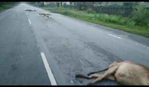 बिलासपुर, तेज तर्रार भाजपा विधायक धरमजीत सिंह के विधान सभा में वाहन कई गयो को रौंद दिया गया सड़क पर ये नजर विचलित करने वाला है, सड़क पर मृत गाए पड़ी रही,कोई भी गौ रक्षक जो गायों के नाम पर वोट है जिनका हिंदू धर्म और गायों पर विशेषाधिकार है ऐसा कोई भी भगवाधारी गौ माता की दुर्दशा मदद करने नही पहुंचा , न किसी भगवाधारी ने इन गौ माताओं के मौत पर सड़क पर चक्का जाम जैसा कोई काम किया वाहन कई किलो मीटर तक गायों को घसीटते ले गए, लेकिन एक भी भाजपा कार्यकर्ता न गौ सेवक नजर आया, कोटा एस डी एम और पुलीस ने भी सड़क से गायों की आवाजाही रोकने कोई वायवस्था नही की है, सीएम के सख्त निर्देश भी एस्डीम स्तर पर गंभीरता से नहीं ले रहे हैं, गृह मंत्री विजय शर्मा के भी कहने का असर नहीं दिख रहा है। वरन बेजुबानों की यू ही मौत नही होती इस घटना के लिए केवल वाहन चालक नही तखतपुर के एस डी एम , पुलीस,और जनप्रतिनिधि नए पुराने सभी जो जो गौ माता के नाम पर सत्ता काबिज है या रहे जितने जनप्रतिनिधि गौ के नाम पर सत्ता सुख भोग चुके या रहे है उनको गौ माता माफ नही करेंगी।