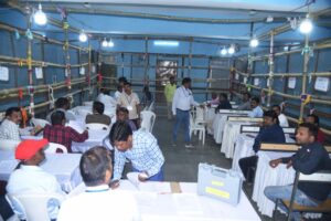 बिलासपुर, 14 फरवरी 2025/नगरीय निकाय चुनाव 2025 के अंतर्गत 15 फरवरी को होने वाली मतगणना के लिए जिला प्रशासन द्वारा तमाम तैयारियां पूरी कर ली गई है। नगर निगम के लिए शासकीय इंजीनियरिंग कॉलेज कोनी में सवेरे 09 बजे से मतगणना का कार्य शुरू होगा। मतगणना स्थल पर यथासंभव तमाम व्यवस्थाएं की गई है। सवेरे 09 बजे सबसे पहले निर्वाचन कर्तव्य मतपत्र की गणना शुरू होगी। निर्वाचन कर्तव्य मतपत्र की गणना के लिए अलग से व्यवस्था की गई है। 02 टेबलों पर इनकी गिनती की जायेगी। ईवीएम मशीनों से गिनती के लिए 76 टेबल लगाए जा रहे है। मतगणना के लिए आज मतगणना दलों को मतगणना स्थल पर ही अंतिम प्रशिक्षण दिया गया। मतगणना स्थल पर केवल पासधारी व्यक्ति ही परिसर पर पहुँच पाएंगे। कई लेयर की जांच के बाद ही अंदर प्रवेश दिया जाएगा।