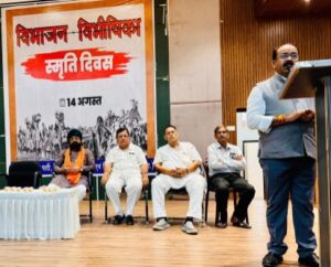 विभाजन विभीषिका पर आयोजित गोष्ठी को संबोधित करते हुए छत्तीसगढ़ शासन में डिप्टी सीएम अरुण साव ने कहा कि विभाजन अंग्रेजों द्वारा सोची समझी साज़िश का नतीजा है जब उन्हें लगा कि भारत को और अधिक दिनों तक गुलाम बना कर दोहन करना सम्भव नहीं है तब उन्होंने देश के भीतर सत्तालोलुप लोगों से साठगांठ कर इस देश को दो टुकड़ों में बांटने के षड्यंत्र को अंजाम दिया इस कृत्य में कांग्रेस पार्टी और मुस्लिम लीग की भूमिका को नज़र अंदाज नहीं किया जा सकता जो मानव इतिहास के सबसे बड़ी विभीषिकाओं में से एक है डिप्टी सीएम ने अपनी बात जारी रखते हुए बताया बंटवारे में जो लाखों लोग मार दिए गए लाखों महिलाओं और बच्चियों के साथ दुष्कर्म जैसे घिनौना कृत्य हुआ लोग अपने मकान अपनी संपति से बेघर कर दिए गए देश भर में रक्तपात का तांडव हुआ जिसे याद कर आज भी रूह कांप जाती है और इस दुर्दशा के जिम्मेदार सिर्फ अंग्रेज ही नहीं अपितु देश के भीतर बैठे सत्तालोलुप अलगाववादी ताकतें भी हैं जिन्होंने विभाजन के निर्णय को स्वीकार किया उन्होंने कहा कि आज भी विभाजनकारी तत्व देश के भीतर सक्रिय हैं देश की कुछ प्रमुख विपक्षी पार्टी आज भी देश में अलगाववाद के बीज बोने में लगे हुए हैं देश को उनसे सावधान रहने की जरूरत है वो देश के ऐसे अराजक तत्व हैं जो आज देश के संवैधानिक संस्थाओं को बदनाम कर देश को अस्थिर करने की कोशिश में लगे हुए हैं ऐसे समय में सभी देशवासियों को सजग रहने की आवश्यकता है ऐसे लोकतन्त्र विरोधी ताकतों का पूरी ताकत से प्रतिकार होना चाहिए जिससे वे अपनी राष्ट्र विरोधी मंशा में कभी सफल न हो सके