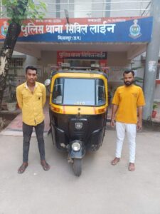 बिलासपुर ,बडे भाई उत्तम चैहान का तबियत खराब होने से उस्लापुर रेल्वे स्टेशन से रात्रि करीबन 11.55 बजे ऑटो क्रमाॅक 10 यू- 3066 में 300रू किराये में बुकिंग कर अपने घर बहतराई थाना सरकंण्डा आ रहे थे कि ऑटो चालक के द्वारा छोटी छोटी गली कूचो में घुमाना शुरू कर दिया तब प्रार्थी के द्वारा बोला की ऑटो सीधा चलाओं मरीज को दिक्कत हो रहा है तथा ऑटो चालक के द्वारा अपने पास रखे एक सब्जी काटने का चाकू दिखाकर प्रार्थी को डरा धमका कर प्रार्थी के पास रखे 1450रू को लूट लिया कि रिपोर्ट पर अपराध पंजीबध्द कर विवेचना में लिया गया विवेचना दौरान वरिष्ठ अधिकारीयों के निर्देशन व मार्गदर्शन में आरोपीयों का धर पकड कार्यवाही हेतु पुलिस टीम बनाकर घटना स्थल के आसपास के स्थानों से सीसीटीव्ही फूटेज व आरटीओं से जानकारी प्राप्त कर आरोपी ऑटो चालक मोहित गोस्वामी एवं उसके साथी राजकुमार मानिकपुरी उर्फ बहरा को गिरफ्तार कर लूटी गई नगदी रकम 1450रू में से 250रू जप्त किया गया तथा घटना में प्रयुक्त एक नग सब्जी काटने का चाकू व ऑटो क्रमाॅक सीजी-10 यू- 3066 जप्त किया गया आरोपीयो को गिरफ्तार कर न्यायिक रिमांण्ड पर भेजा गया।