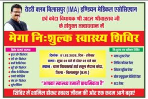 बिलासपुर शिवतराई 31.01.2026 विधायक अटल श्रीवास्तव रोटरी क्लब मिडटाउन एवं इंडियन मेडिकल एशोसिएशन के संयुक्त तत्वाधान में दिनांक 01 फरवरी 2026 सुबह 9.00 बजे से दोपहर 2.00 बजे तक शास.हाई.स्कुल शिवतराई प्रांगण में एकदिवसीय निःशुल्क मेगा स्वास्थ्य शिविर आयोजित है। स्वास्थ्य शिविर में हड्डी रोग हृदय रोग त्वचा रोग स्त्री रोग शिशु रोग नेत्र रोग नाक कान गला रोग दंत रोग कैंसर रोग के विशेषज्ञ सर्जन विशेष रूप से उपस्थित होकर अपनी सेवा प्रदान करेंगे। बिलासपुर जिले के प्रख्यात चिकित्सक प्रमुख रूप से डॉ. हेमंट चर्टर्जी डॉ. संजीव खण्डूजा डॉ. विपिन बैस डॉ. अभिषेक घाडके डॉ. अखिलेश देवरस डॉ. अनिरूद्ध कौशिक डॉ. अखिलेख वर्मा डॉ. दीपक सरकार डॉ. गौरी देशकर डॉ. राजेश्वर उद्देश्य डॉ. उज्जवला कराडे डॉ. अशोक मेहता डॉ. नमिता श्रीवास्तव डॉ. संजय मेहता डॉ. संदीप तिवारी डॉ. अभिजित रायजादा डॉ. नेहा सिंह ठाकुर डॉ. मिनी श्रीवास्तव डॉ. सृजीता साहू डॉ. निरज शर्मा डॉ. सुनिल केडिया डॉ. संतोष उद्देश्य डॉ. आशिष पुरोहित डॉ. अपूर्व सिंह ठाकुर डॉ. देवेन्दर सिंह डॉ. मनीष श्रीवास्तव डॉ. सौरभ भण्डारी डॉ. एस अग्रवाल डॉ. अंचल प्रधान डॉ. चन्द्रशेखर राहलकर डॉ. जे.एन शर्मा डॉ. सुरेश कुमार गिडवानी उपस्थित रहेंगे।