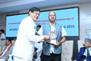 पंडित दीन दयाल उपाध्याय मेमोरियल हेल्थ साइंसेज एवं आयुष विश्वविद्यालय, अटल नगर नवा रायपुर में आयोजित ऑल इंडिया हेल्थ साइंसेज वाइस चांसलर मीट 2026 में मुख्यमंत्री श्री विष्णु देव साय एवं स्वास्थ्य मंत्री श्री श्याम बिहारी जायसवाल की उपस्थिति में श्री अग्रवाल ने इस गंभीर विषय पर विस्तार से अपनी बात रखी।